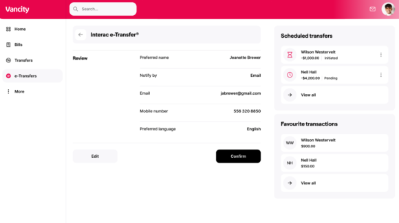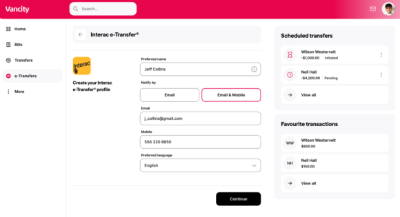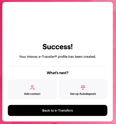 The first time you send an Interac e-Transfer, you will be prompted to set up an e-Transfer profile. You will need to log in to your online banking account to follow the steps below.