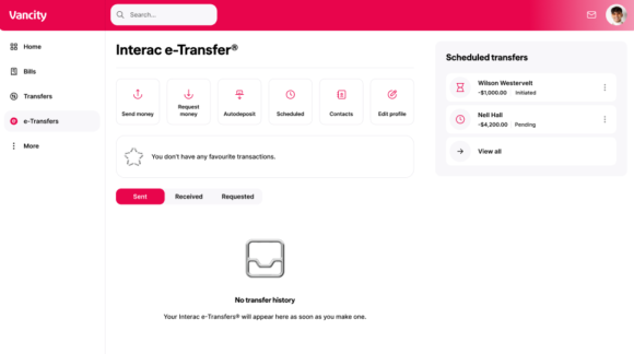 Log in online and click on the Interac e-Transfers box. |