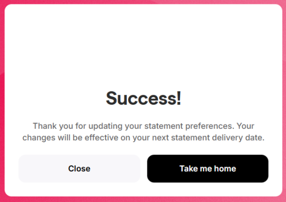 | A success message will indicate that your changes will take effect on your next statement delivery date. | ![]() |