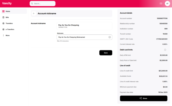 You can create custom nicknames for your accounts to stay organized in Online Banking and at Vancity ATMs.
