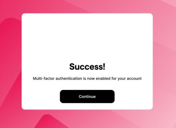 Once the Authenticator App is successfully set up, select ‘Continue’. |
