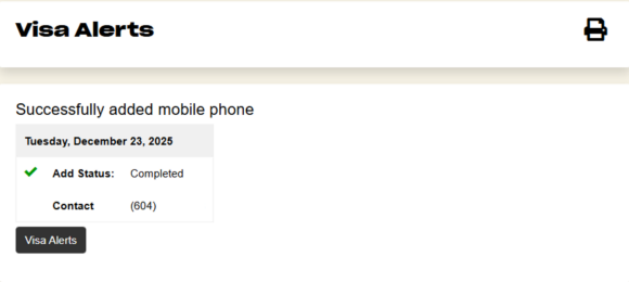 All alerts available through the Manage my Visa* card website can be set up through your browser using a computer or mobile device.