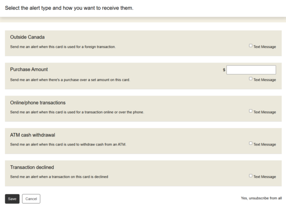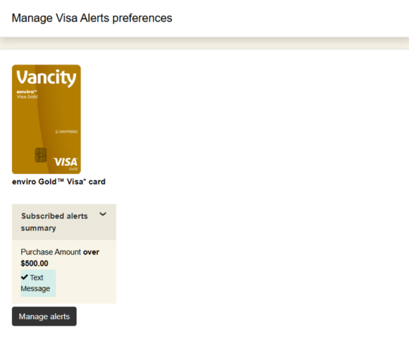 More information about how to set up alerts in online banking can be found here: enviro™ Visa* alerts – Learning Hub)