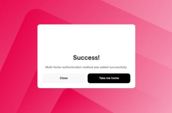 Once Voice Call Authentication is successfully set up, select ‘Take me home’ or ‘Close‘. |