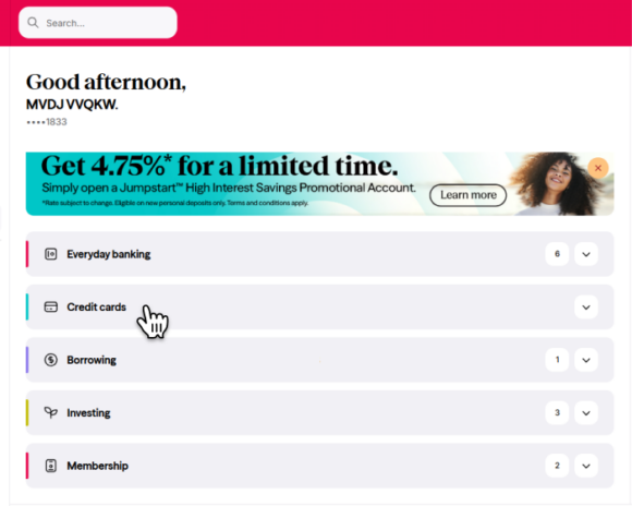 On the home screen, scroll down to Credit Cards and select the card you want to view.