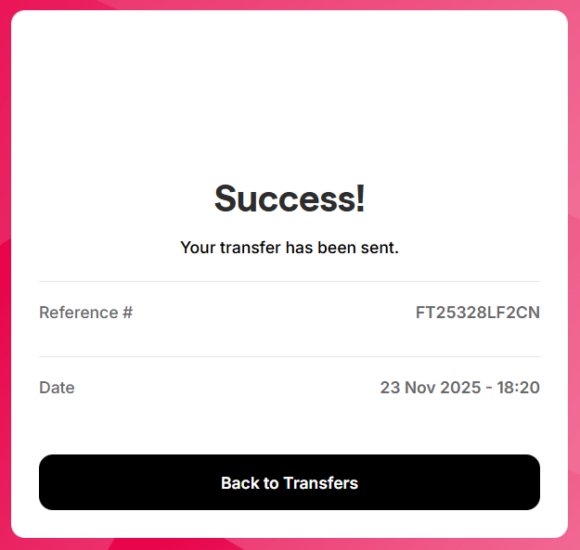 Step 4: A success message will appear to confirm your transfer is complete.
