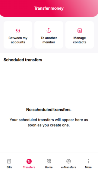 Step 1: Log in to Online Banking and select Transfers. Then click ‘Between my accounts’.
